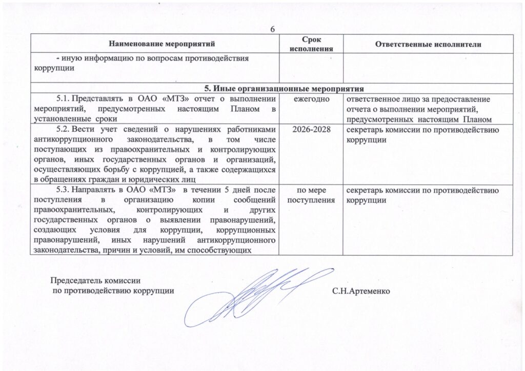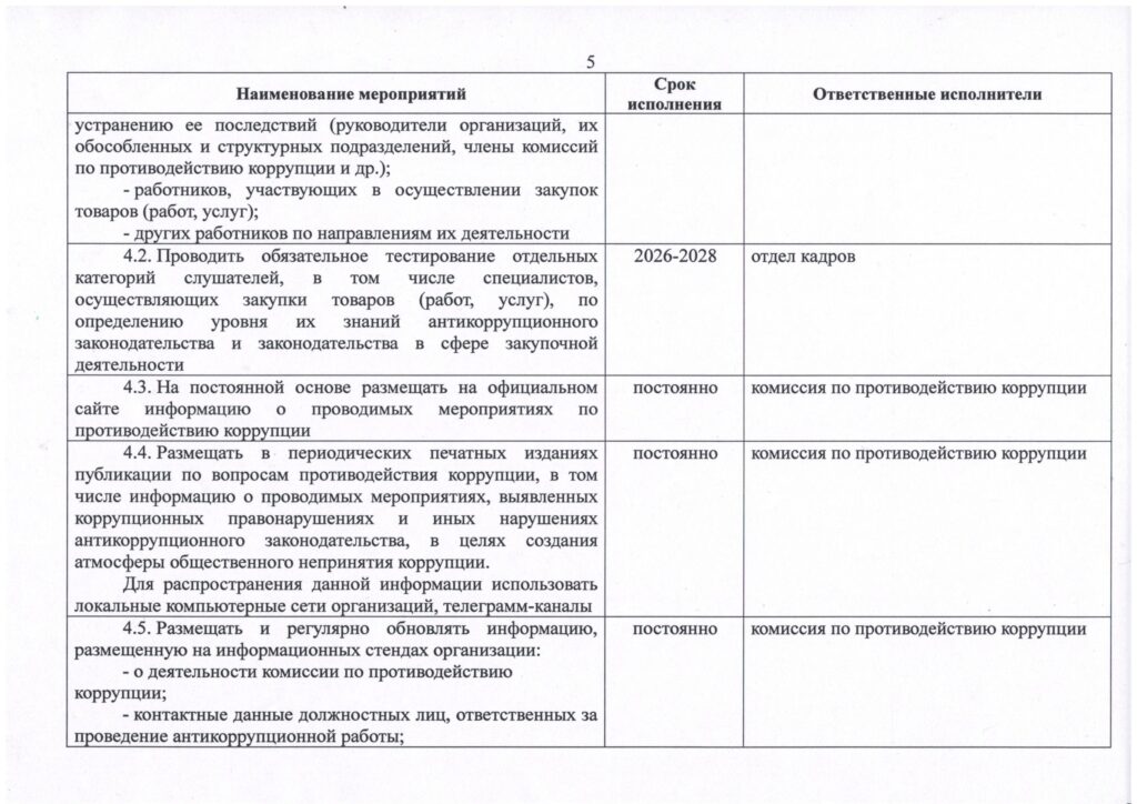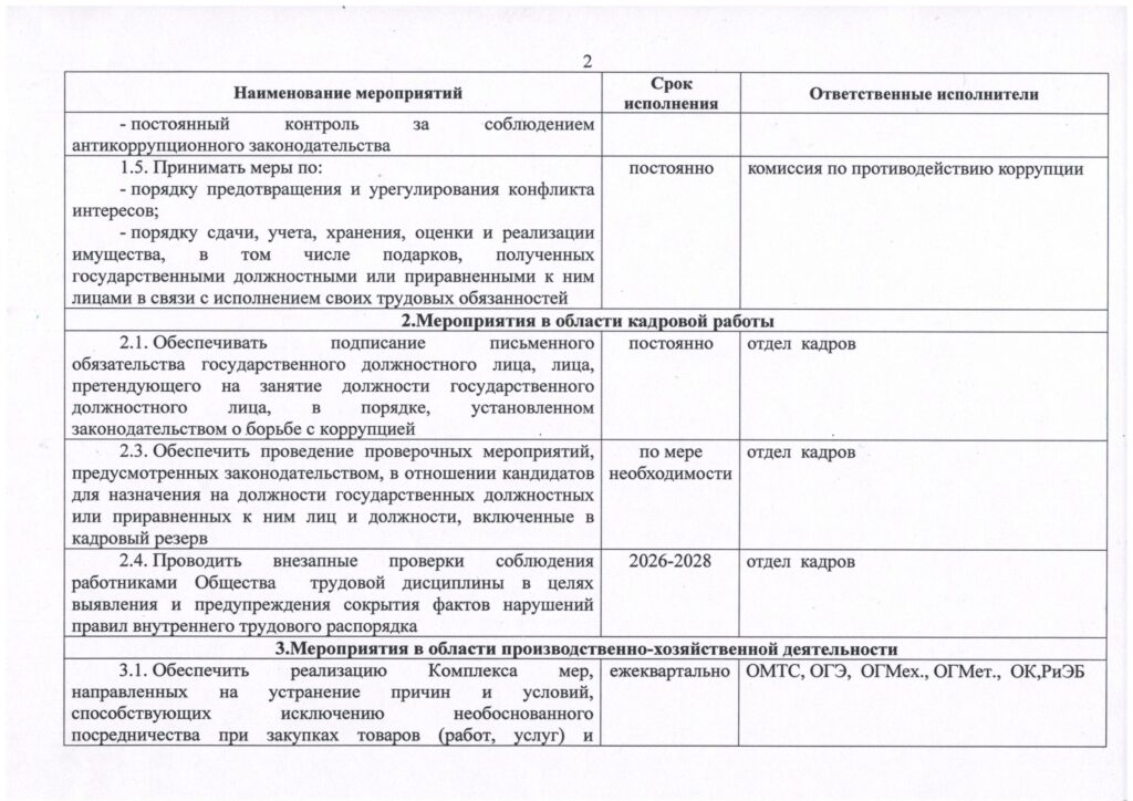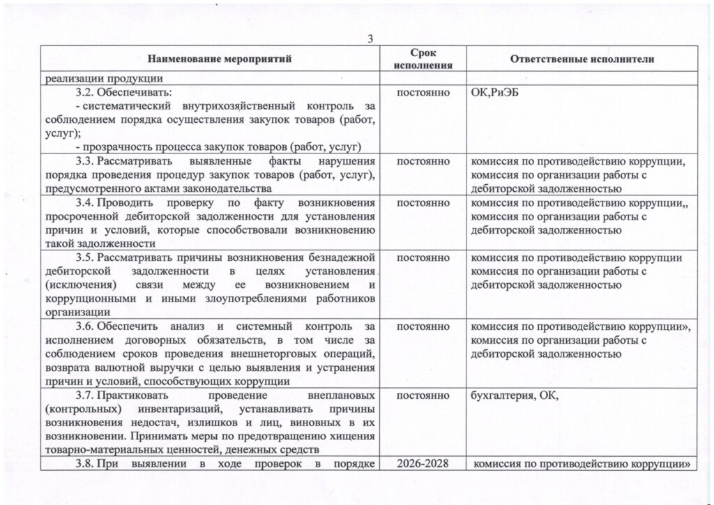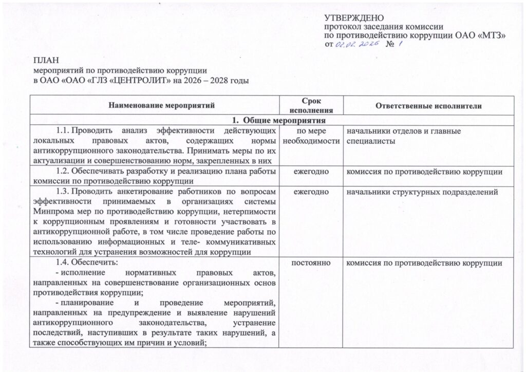 План мероприятий по противодействию коррупции в ОАО “ГЛЗ “ЦЕНТРОЛИТ” на 2026–2028 годы